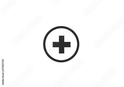 Fototapeta premium Black plus sign inside a black circle on a white background