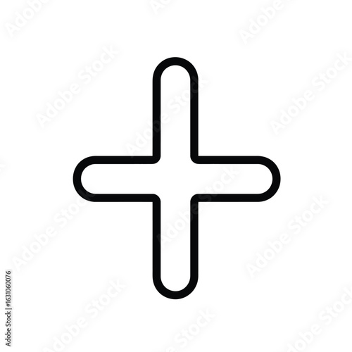 © Md Mojammel, Fototapeta premium Black Plus Sign Outline Isolated on White, Rounded Corner Cross Shape Symbol