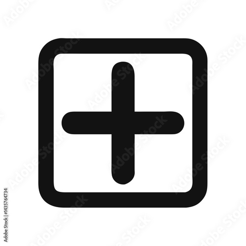 Obraz premium Black plus sign symbol centered within rounded square shape