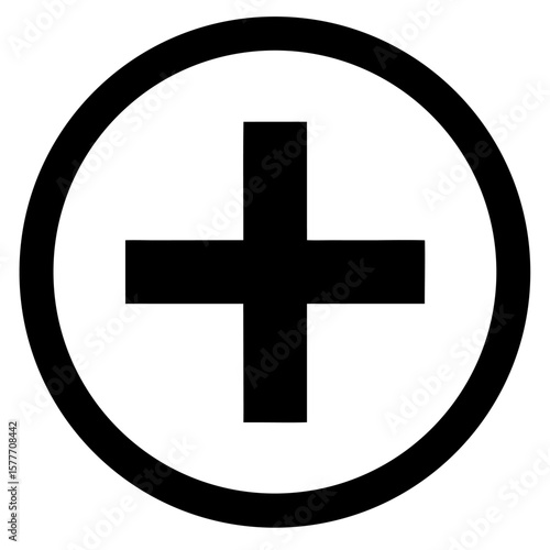 Obraz premium Black plus symbol enclosed within a clean circular outline