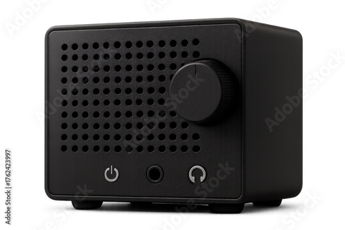 Fototapeta premium Black portable audio speaker box with volume knob