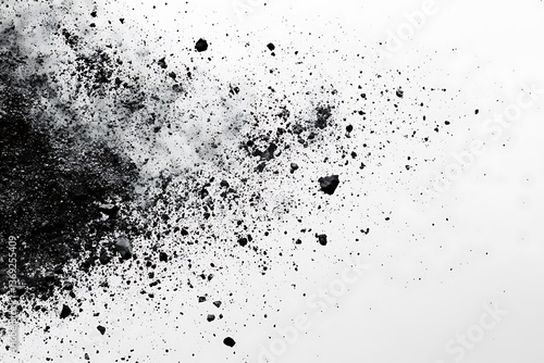 © Dimas, Obraz premium Black powder explosion on white background creating dynamic abstract texture and pattern