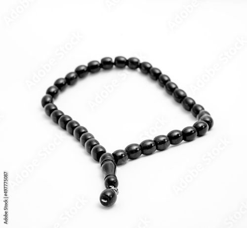 © bellakadife, Obraz premium Black prayer beads on a white background