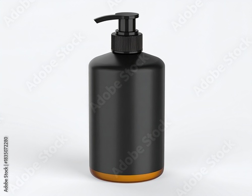 Fototapeta premium Black pump bottle with gold accent on a white background