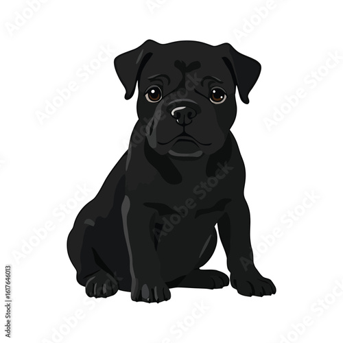 Fototapeta premium Black Puppy Dog Illustration Sitting on White Background in Realistic Vector Style