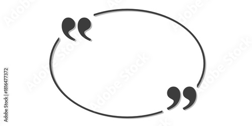 © Shawn Hempel, Fototapeta premium Black quotation marks in cutouts of round frame on white background, quote template with copy space