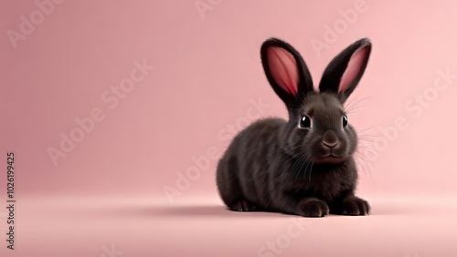 © Leo_Arts, Obraz premium Black rabbit on a pink background, Cute Easter bunny