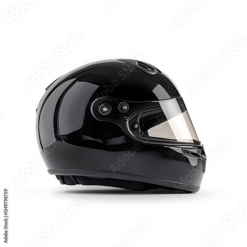 Fototapeta premium Black racing helmet, studio shot, white background, motorsport safety