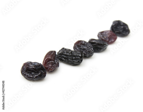 © schankz, Fototapeta premium Black raisins set on white background.