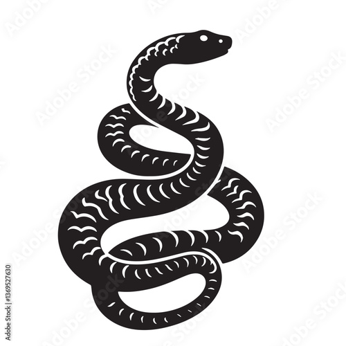© Craftdot, Fototapeta premium Black Rattlesnake Silhouette Vector, High Quality Illustration on White Background