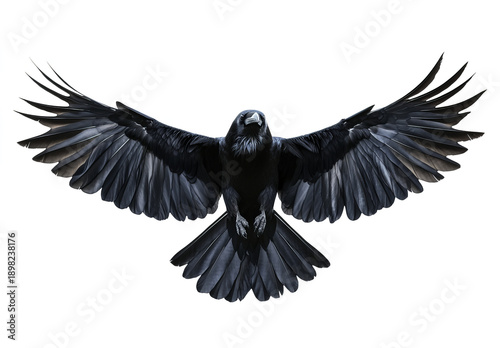 © Edgar Martirosyan, Fototapeta premium black raven in flight, with its wings spread wide, against a transparent background