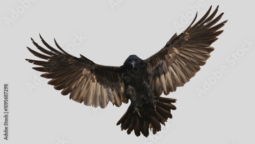 © Ayoub, Naklejka premium Black raven isolated on white background, crow cutout in empty backdrop