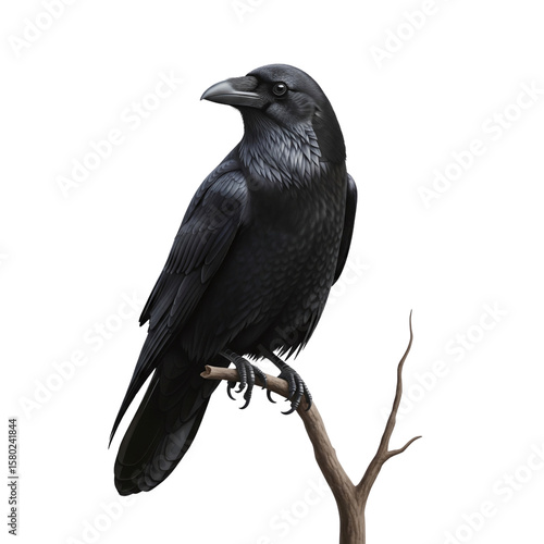 © PNG Lab, Fototapeta premium Black raven perched on a branch