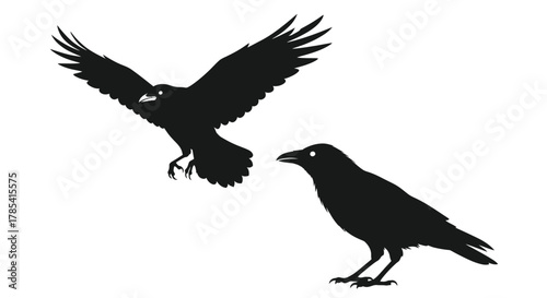 © Yasi Lens, Naklejka premium Black raven silhouette vector graphic flying and standing crows art