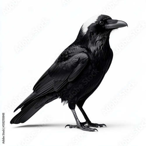 © Chokii.Ns, Fototapeta premium Black Raven with White Cap Against White Background, Generative AI.