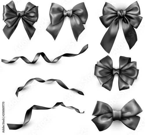 © svetlaborovko, Naklejka premium Black realistic satin bows and ribbons isolated on white.