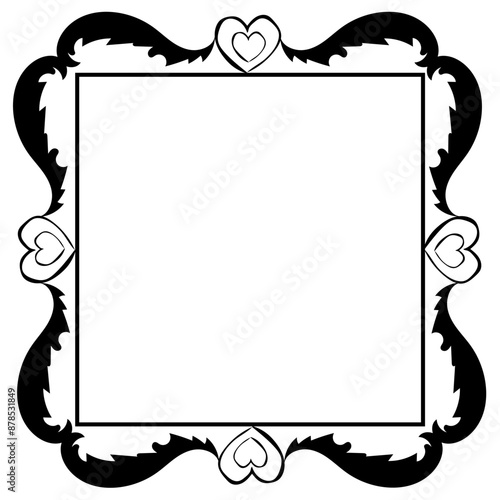 © Vera, Fototapeta premium Black rectangular frame decorated with a doula-style heart pattern