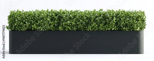 © YONG, Obraz premium Black rectangular planter with dense green plants on white background.