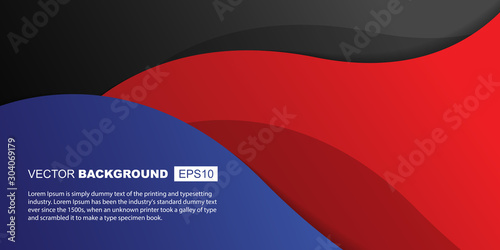 © LayerAce.com, Obraz premium Black Red and Blue Gradient Elegant Waves with Shadows Background Template