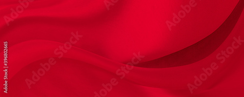 © Kamjana, Obraz premium Black red satin dark fabric texture luxurious shiny that is abstract silk cloth background with patterns soft waves blur beautiful.