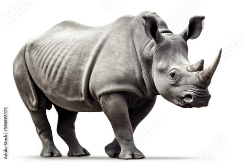 © ruang, Fototapeta premium black rhino isolated on white. endangered species. AI generative image.