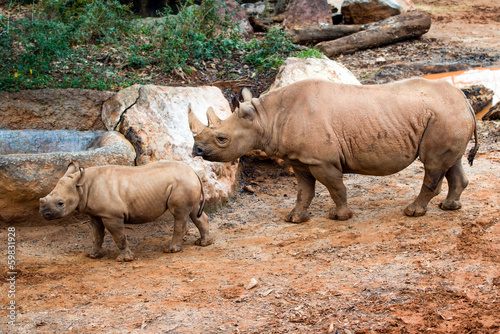 © Robert Hainer, Fototapeta premium Black rhino mother and her calf