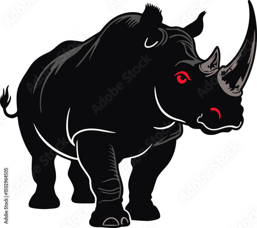 Fototapeta premium Black Rhino Vector Illustration with Red Eyes – Powerful and Intense Style