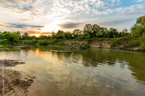 © radu79, Obraz premium Black river at sunset, Romania, Europe