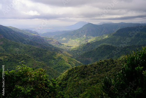 Naklejka premium Black River Gorge Viewpoint with Lush Green Rainforest Valley in Mauritius