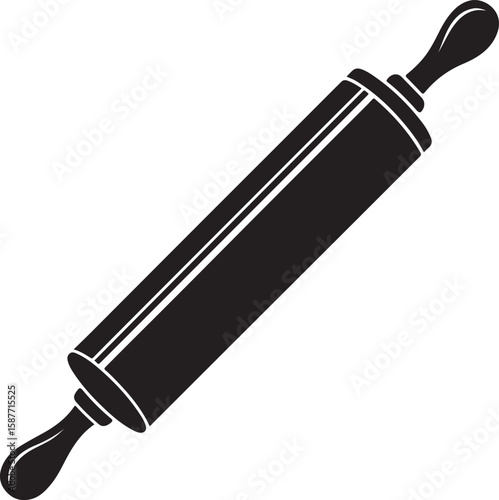 Fototapeta premium Black rolling pin kitchen utensil icon baking tool cooking equipment