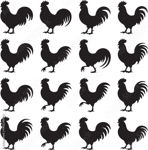 Fototapeta premium black rooster silhouettes on white background