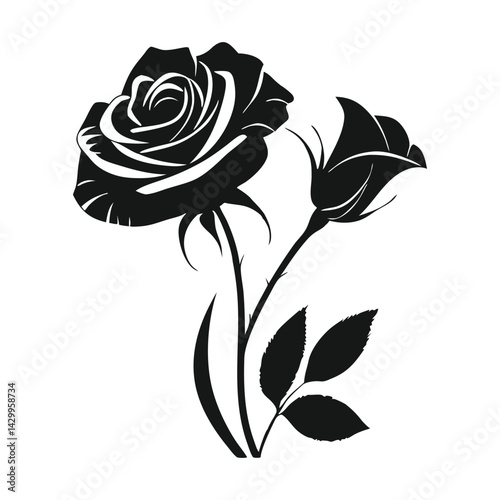 Obraz premium Black Rose Silhouette Vector Set – Elegant Floral Illustrations with Leaves and Buds – Perfect for Tattoos, Decorative Art, Laser Cutting, Cricut, Sublimation, and Wedding Invitations