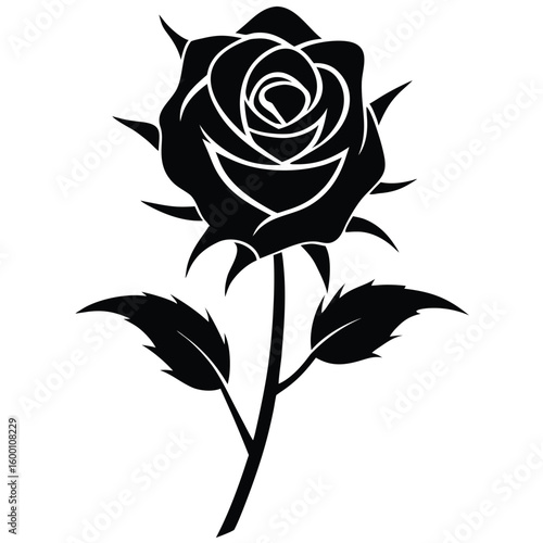 © MDMUKUL, Obraz premium black rose vector illustration rose, flower, vector, floral, nature, design, leaf, illustration, plant, vintage, blossom, beauty, art,