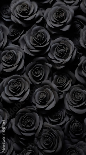 Fototapeta premium Black roses bas relief pattern inflorescence arrangement backgrounds.