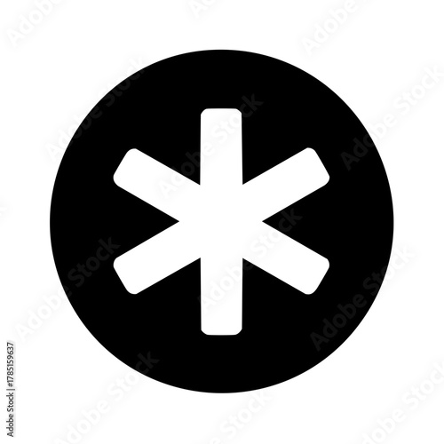 Obraz premium Black round button with white asterisk symbol clean graphic interface element