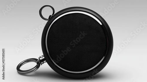Fototapeta premium Black Round Speaker with Keychain Loop on Grey Background