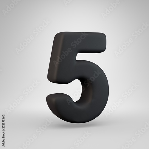 © Whitebarbie, Fototapeta premium Black rubber number 5 isolated on white background.