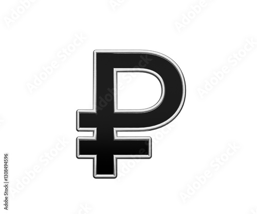 © Hammad, Fototapeta premium Black Ruble Currency Symbol With Metal Gleam And Beveled Edges 3D Illustration