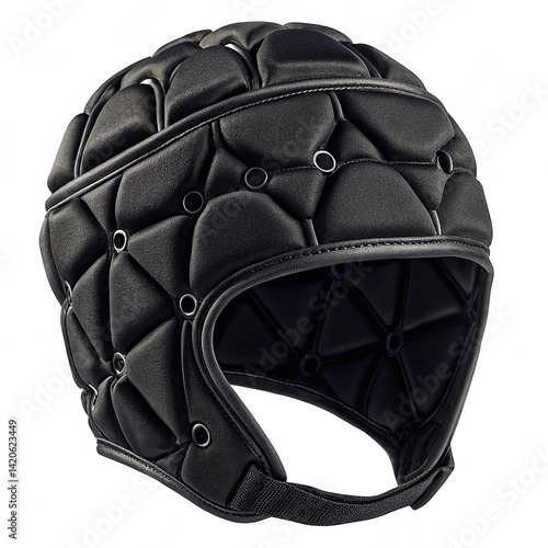 © SAIJID, Naklejka premium Black rugby scrum cap with padding on white
