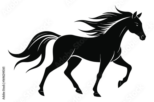 Obraz premium Black running mustang horse silhouette vector illustration with flowing mane and tail