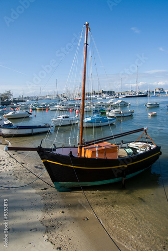 © FrankBoston, Obraz premium Black sailing ship on the beach
