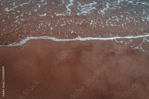 © Katharina, Fototapeta premium black sand beach at sundown with cloud reflections on wet sand waves clear water