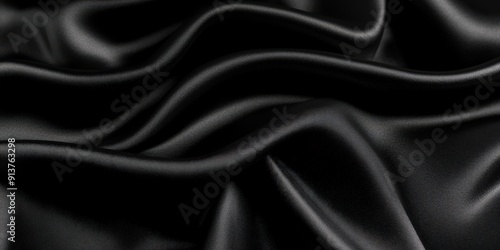 © Planetz, Fototapeta premium Black Satin Fabric Draped Texture