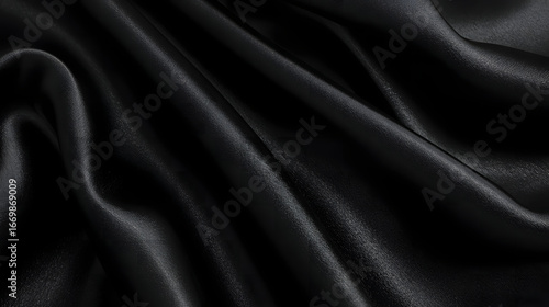 © Ceylon Flyer, Fototapeta premium Black Satin Fabric – Elegant Luxury Textile Waves Stock Photo