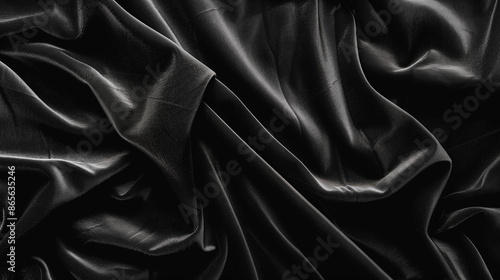 © Oldcorporal, Obraz premium Black Satin Fabric Texture with Folds