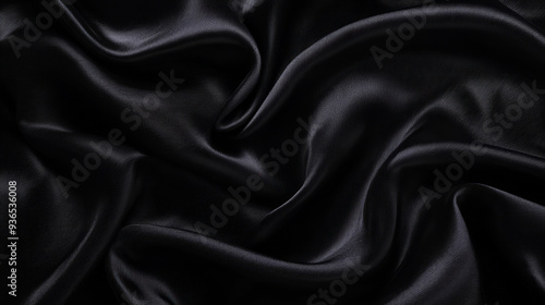 Obraz premium Black satin fabric, with smooth, wavy folds,