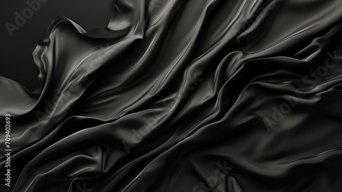 Fototapeta premium Black satin or silk wavy abstract background with blank space for advertising.