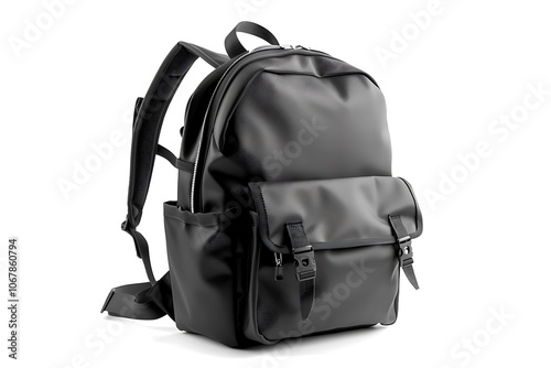 © MahmudulHassan, Naklejka premium Black school backpack on white background