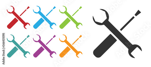 © Kostiantyn, Fototapeta premium Black Screwdriver and wrench spanner tools icon isolated on white background. Service tool symbol. Set icons colorful. Vector Illustration.