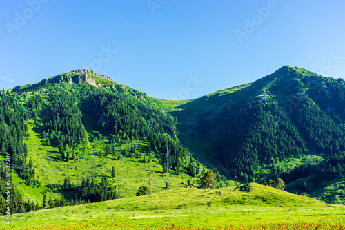 © klenger, Obraz premium Black Sea turkey and green pine trees forest landscape with blue cloudy sky
